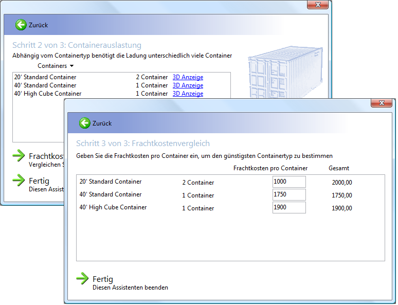 Geben Sie eine Packliste ein, und vergleichen Sie die Frachtkosten bei verschiedenen Containertypen. In wenigen Minuten haben Sie ihre Frachtkosten reduziert!
